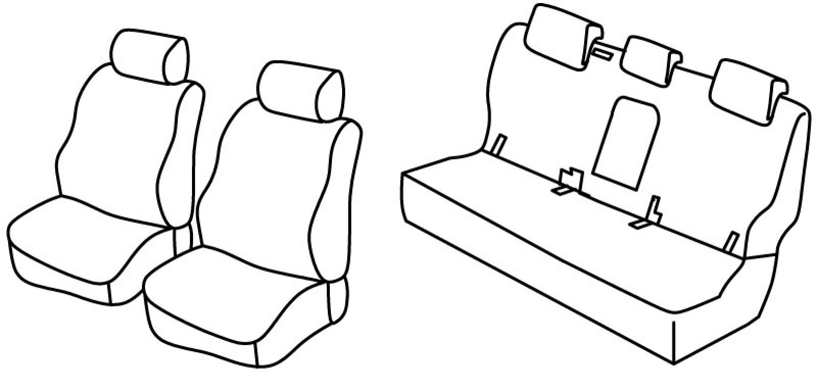 prednja sjedala obična, airbag, isofix povezan s presvlakom, stražnji naslon ruke, treći (srednji) pojas izlazi iz naslona, stražnji naslon i sjedalo u komadu, stražnji nasloni za glavu su utopni (2+1)