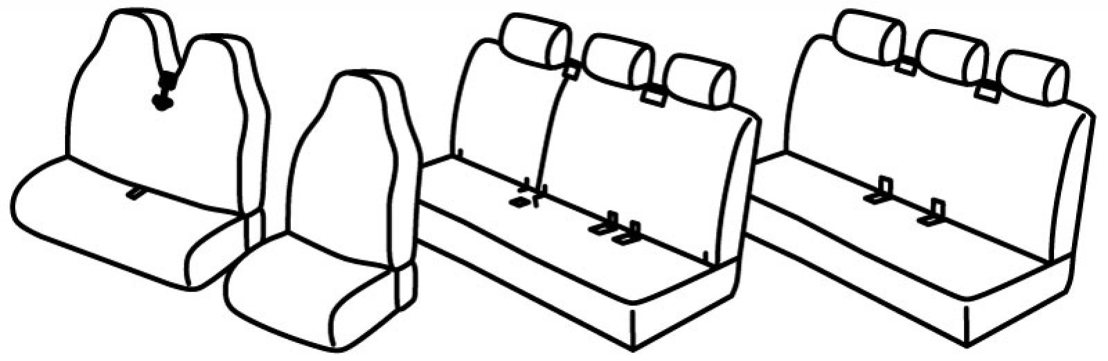 1. red: dupli naslon i sjedalo u komadu, pojas na sredini gornjeg dijela duplog naslona, 2. red:stražnji naslon djeljiv 1/3+2/3, treći (srednji) pojas izlazi iz naslona, 3. red: stražnji naslon i sjedalo u komadu