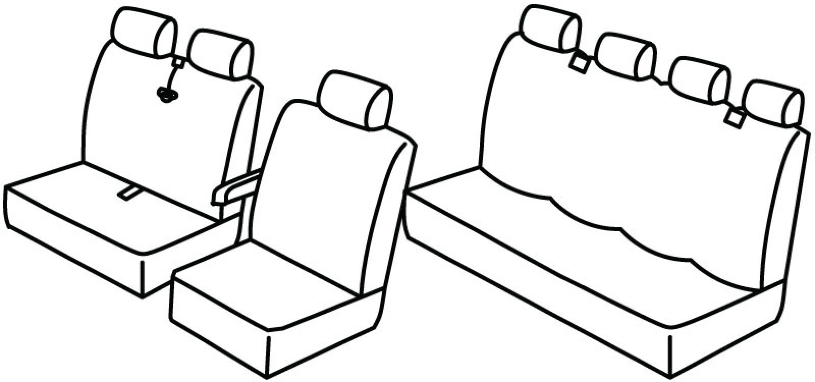 1. red: 1+2, suvozačev pojas izlazi iz naslona, dupli naslon i sjedalo u komadu, prednji naslon ruke vezan za naslon vozača, nasloni za glavu su normalni, 2 pojasa na stražnjem naslonu, stražnji naslon i sjedalo u komadu