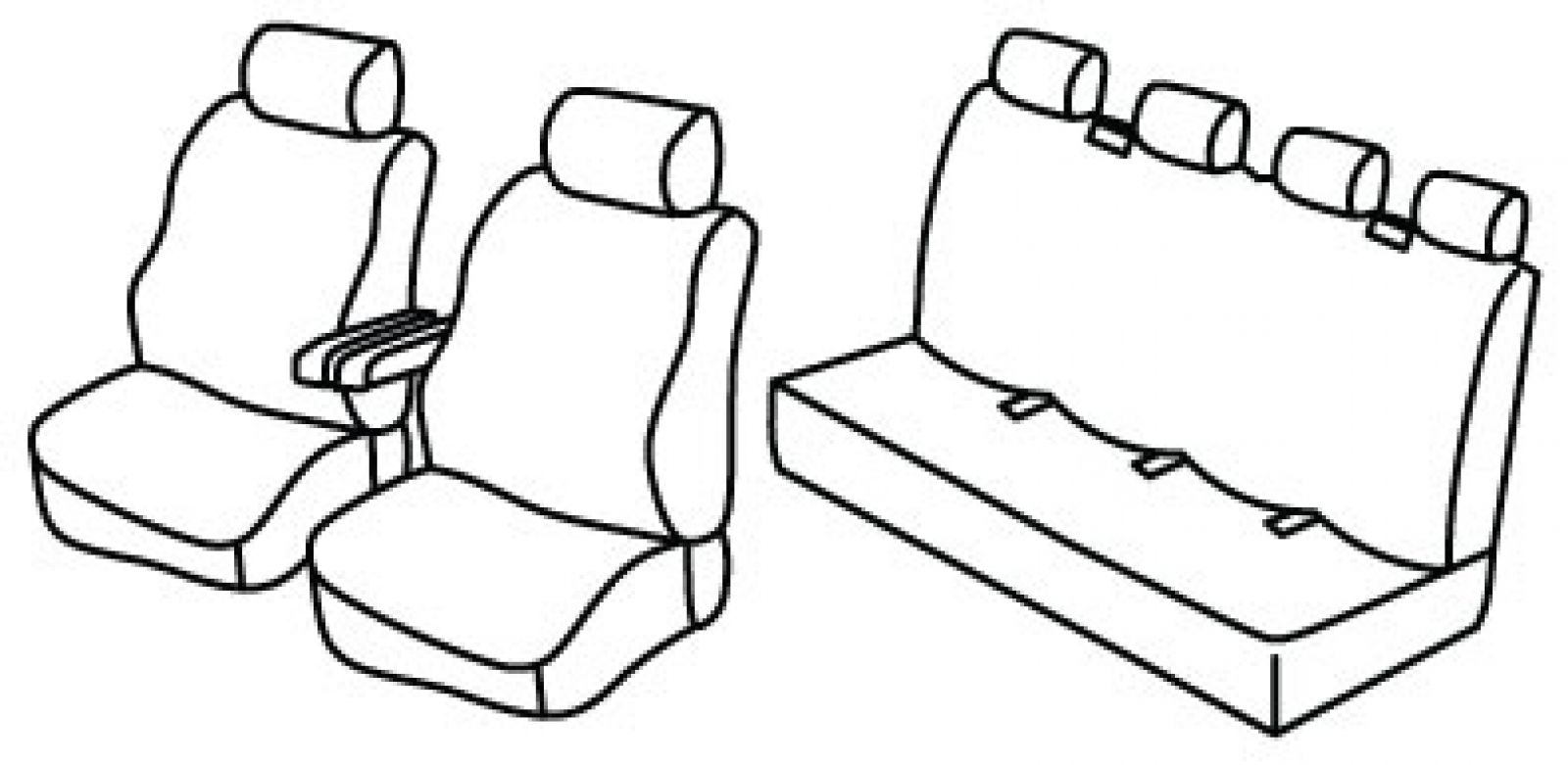 prednja sjedala obična, 2 prednja naslona ruke vezana za naslone sjedala, stražnji naslon i sjedalo u komadu, 2 pojasa na stražnjem naslonu, nasloni za glavu su normalni
