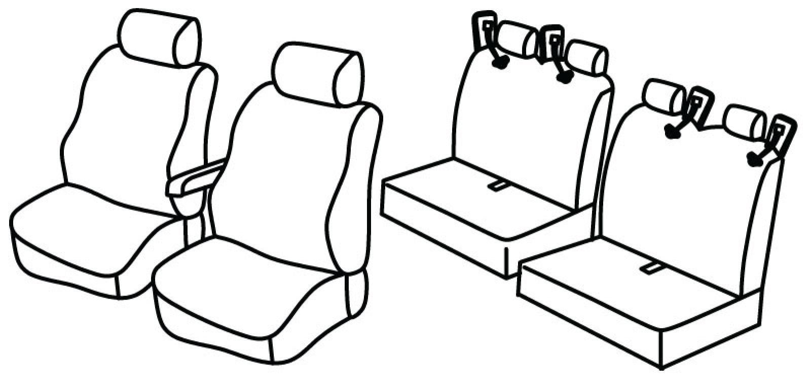 prednja sjedala obična, prednji naslon ruke vezan za naslon vozača, stražnji naslon i sjedalo djeljivi 1/2+1/2, 4 pojasa na stražnjem naslonu, stražnji nasloni za glavu su normalni