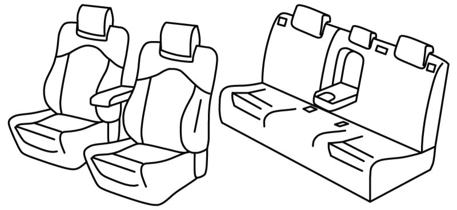 prednja sjedala profilirana, prednji nasloni za glavu su aktivni, poleđina prednjih naslona od plastike, prednji naslon ruke konzolni (nije vezan za naslon sjedala), airbag, stražnji naslon djeljiv 1/3+2/3, stražnje sjedalo u komadu, stražnji naslon ruke, treći (srednji) pojas izlazi iz naslona, isofix nije povezan s presvlakom, ali se nalazi između naslona i sjedala, stražnji nasloni za glavu su utopni (2+1)