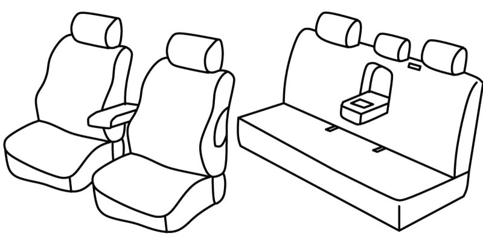 stražnji naslon i sjedalo u komadu, treći (srednji) pojas izlazi iz naslona, airbag, prednji naslon ruke, stražnji naslon ruke, u stražnjem naslonu za ruku integrirani držač za čaše, poleđina prednjih naslona od plastike