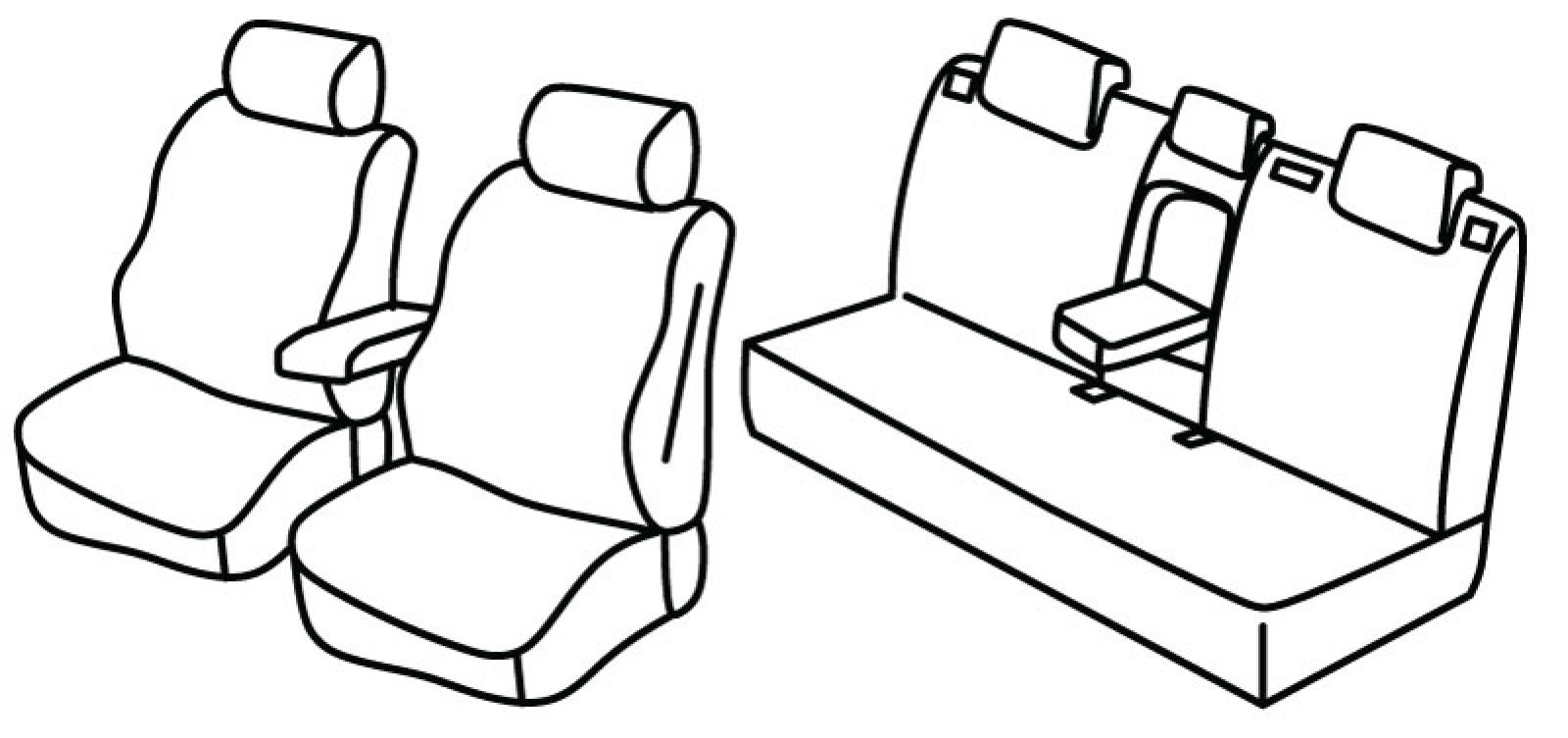 prednja sjedala obična, 3 airbaga (sa vanjske strane prednjih naslona i na vozačevom naslonu sa unutarnje strane), prednji naslon ruke nema presvlaku, poleđina prednjih naslona od plastike koja se prekriva presvlakom, stražnji naslon i sjedalo djeljivi 1/3+1/3+1/3, stražnje sjedalo u komadu, stražnji naslon ruke, stražnji nasloni za glavu su utopni (2+1), isofix nije povezan s presvlakom