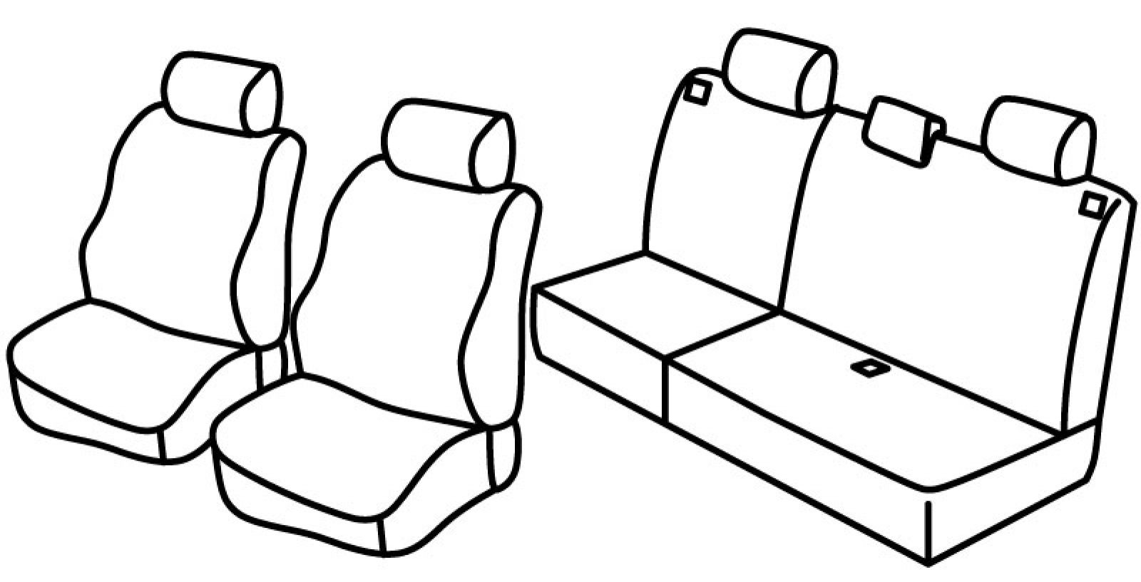 na poleđini prednjih naslona su plastični sklopivi stolići, stražnji naslon i sjedalo djeljivi 1/3+2/3, stražnji nasloni za glavu 2 normalna + 1 srednji utopni