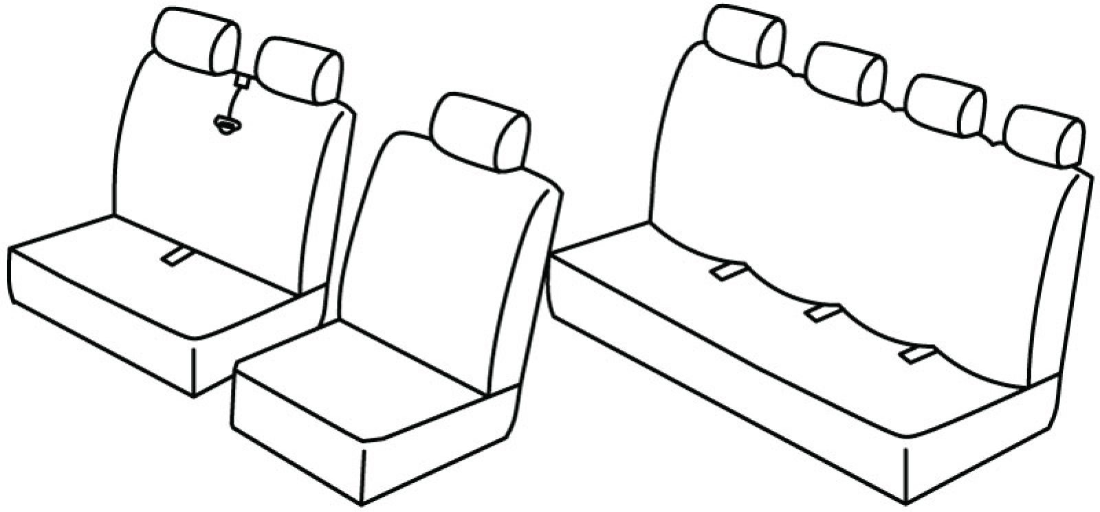 1+2, prednji nasloni za glavu su aktivni, dupli naslon i sjedalo u komadu, pojas na sredini gornjeg dijela duplog naslona, stražnji naslon i sjedalo u komadu, stražnji nasloni za glavu su aktivni