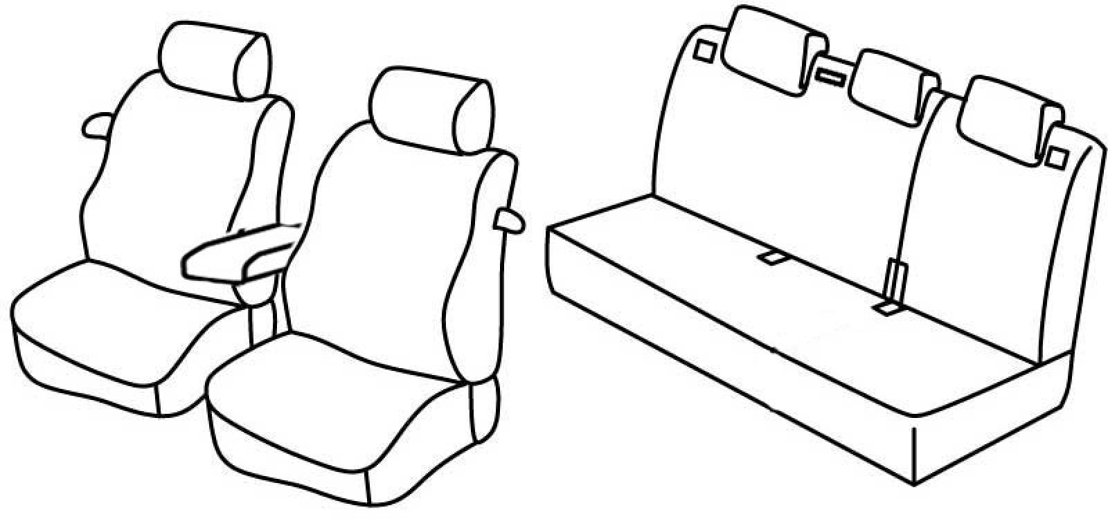 prednja sjedala obična, ručice za preklapanje naslona, prednji naslon ruke konzolni (nije vezan za naslon sjedala), stražnji naslon djeljiv 2/3+1/3, stražnje sjedalo u komadu, treći (srednji) pojas izlazi iz naslona, stražnji nasloni za glavu su utopni (2+1)