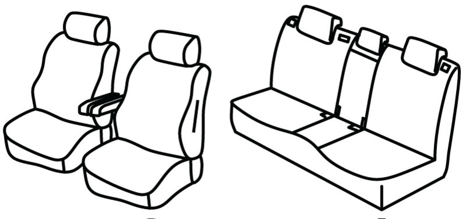 prednja sjedala obična, 2 prednja naslona ruke, poleđina prednjih naslona od plastike koja se prekriva presvlakom, airbag, stražnji naslon i sjedalo djeljivi 1/3+1/3+1/3, srednji stražnji naslon se preklapa u naslon ruke, isofix nije povezan s presvlakom, treći (srednji) pojas izlazi iz naslona, stražnji nasloni za glavu su utopni (2+1)