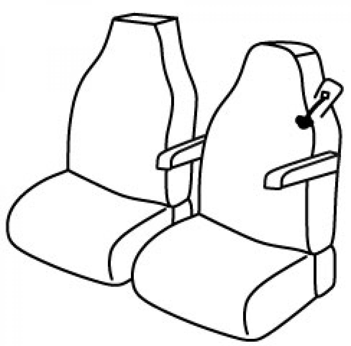 prednja sjedala avionska, vozačevo i suvozačevo sjedalo nisu istih dimenzija, 2 prednja naslona ruke vezana za naslon vozača, vozačev pojas izlazi iz naslona