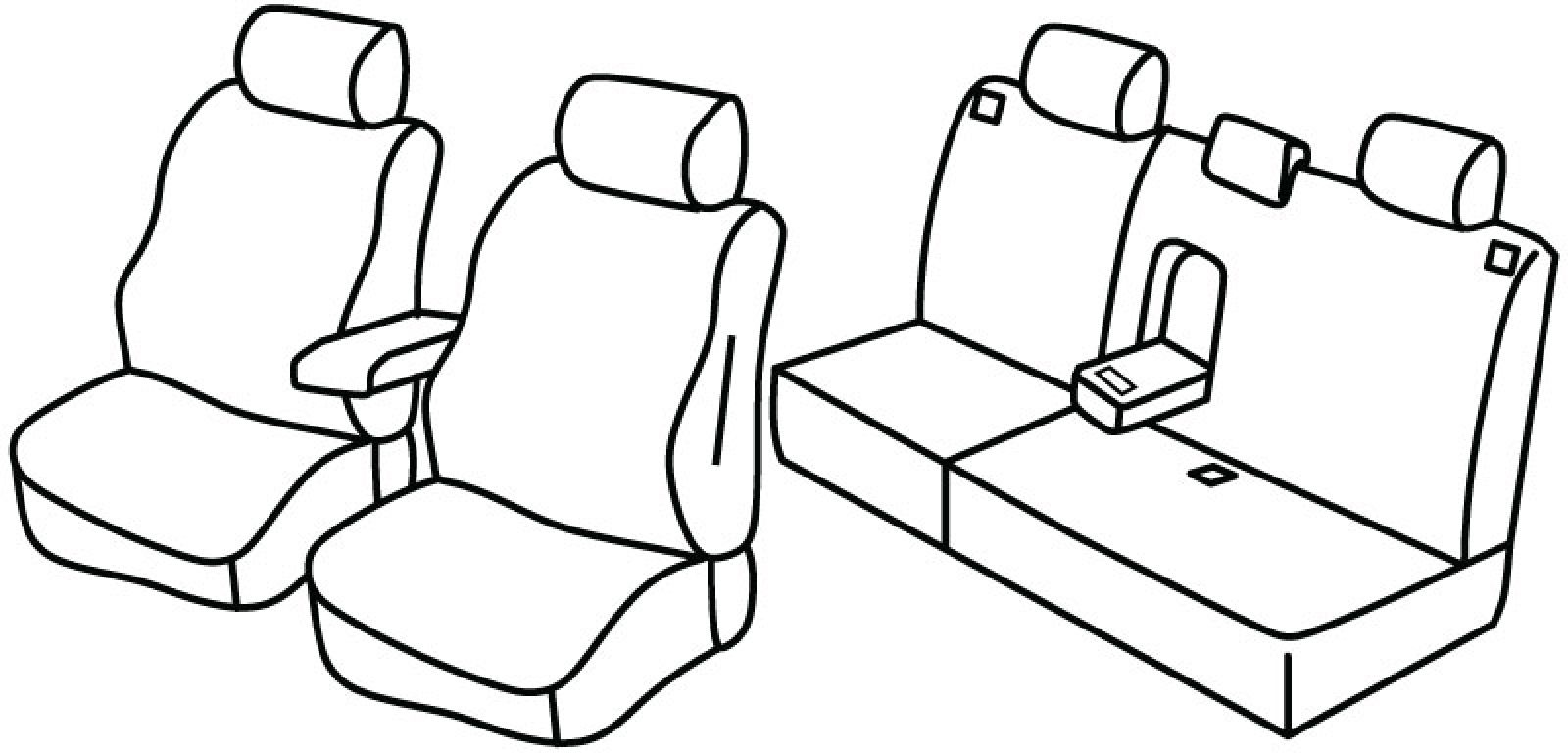 prednja sjedala obična, airbag,prednji nasloni za glavu su normalni,prednji naslon ruke konzolni (nije vezan za naslon sjedala),stražnji naslon i sjedalo djeljivi 1/3+2/3,stražnji nasloni za glavu 2 normalna + 1 srednji utopni,stražnji naslon ruke