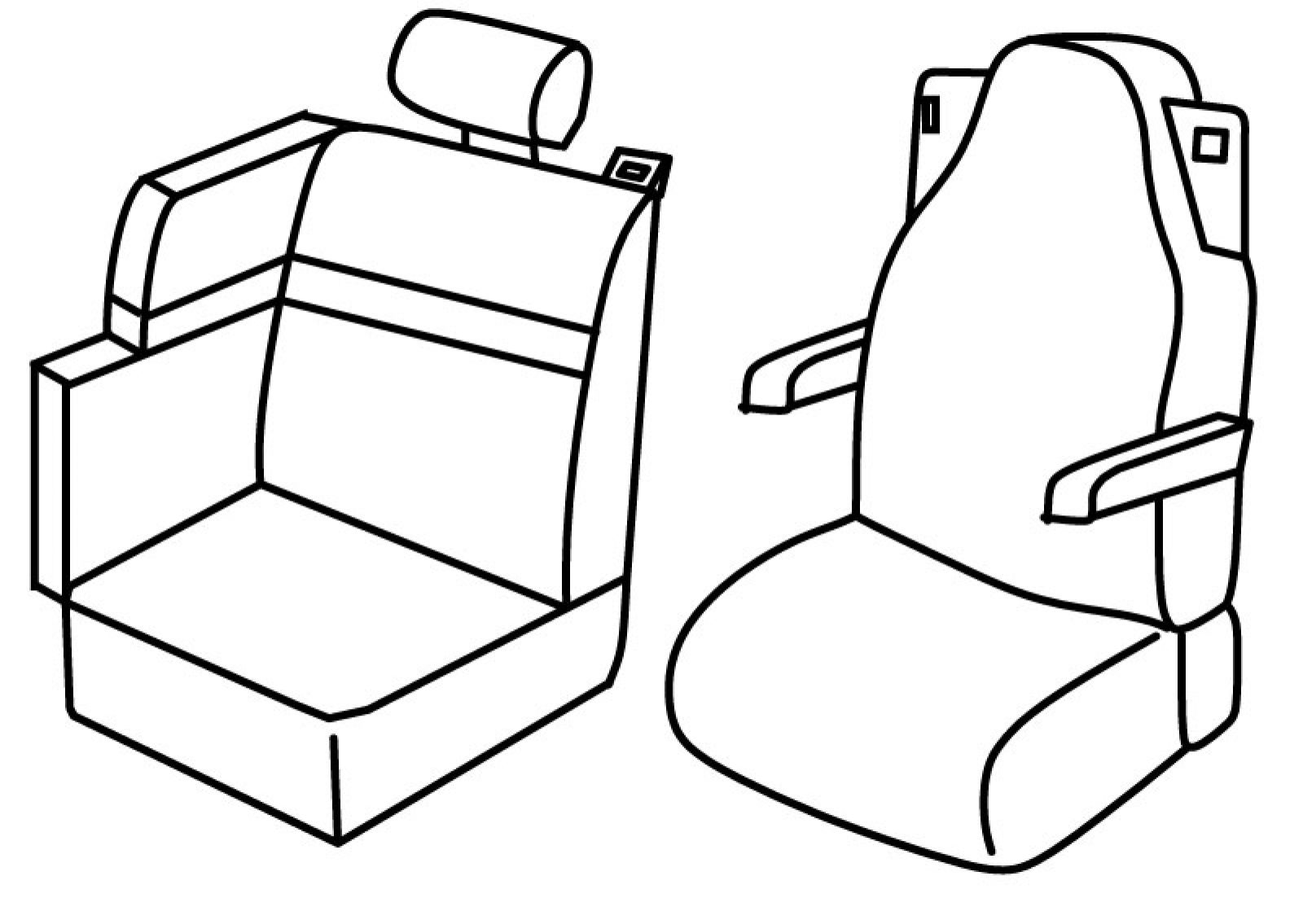 vozačev pojas izlazi iz naslona, vozačevo sjedalo je avionsko, prednji naslon ruke vezan za naslon vozača s vanjske strane, suvozačevo sjedalo je kutno