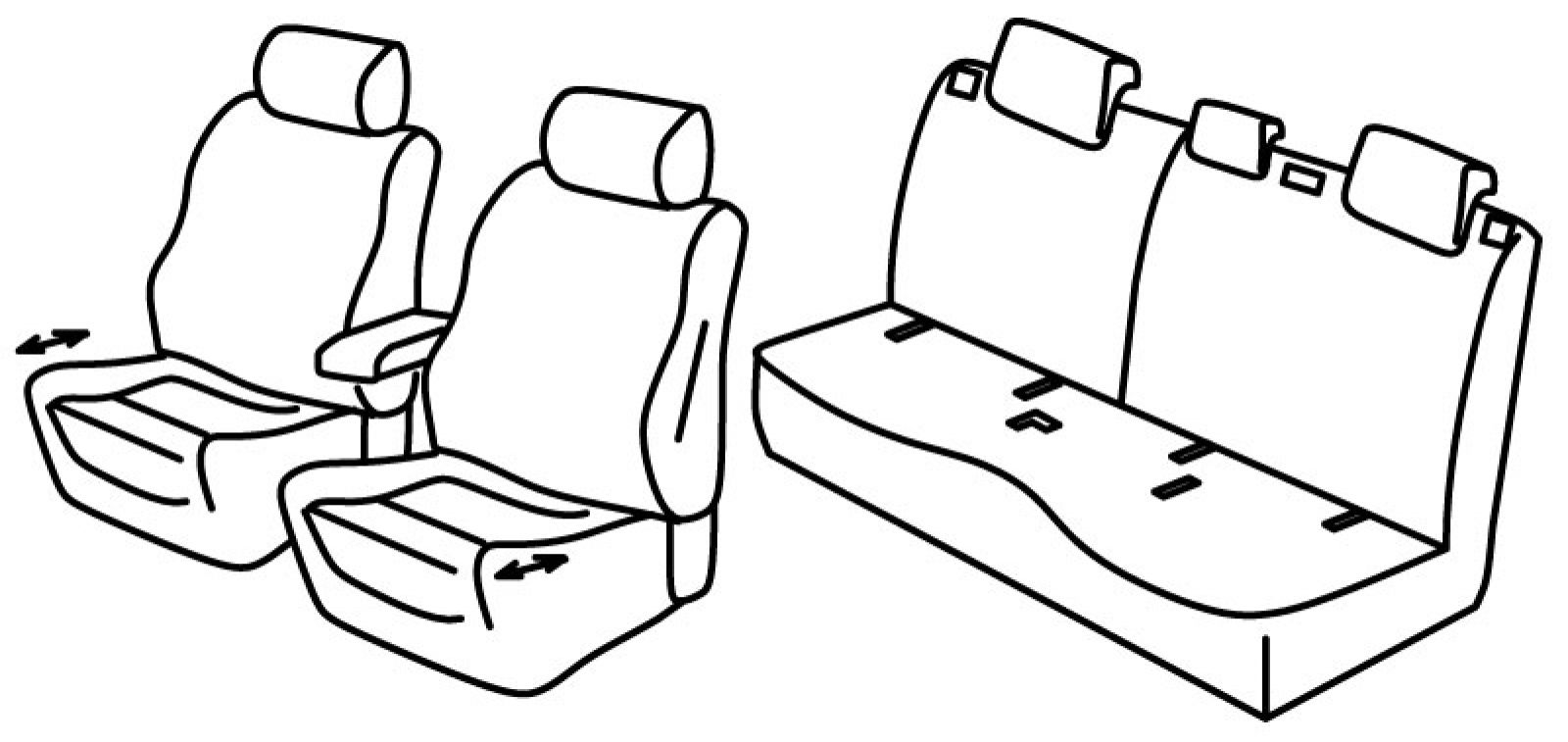 prednja sjedala ergonomska, prednja sjedala imaju izvlačni dio ali se presvlaka može postaviti samo na potpuno uvučena sjedala, poleđina prednjih naslona od plastike, airbag, prednji naslon ruke konzolni (nije vezan za naslon sjedala), stražnji srednji naslon za glavu je aktivan, treći (srednji) pojas izlazi iz naslona, stražnji nasloni za glavu su utopni (2+1)