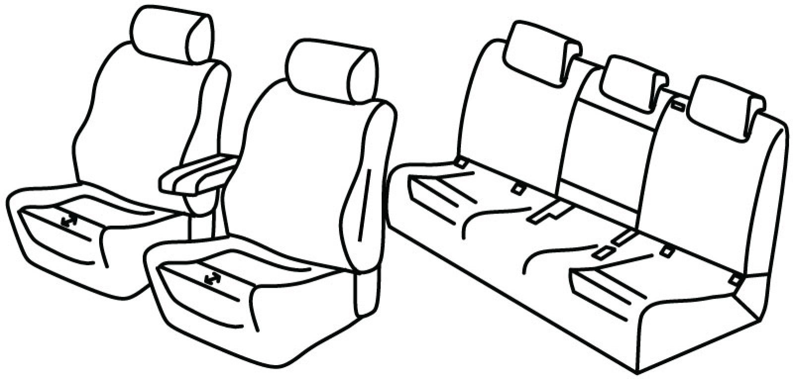 prednja sjedala ergonomska, prednja sjedala imaju izvlačni dio ali se presvlaka može postaviti samo na potpuno uvučena sjedala, prednji naslon ruke iz 2 dijela (nema presvlaku), poleđina prednjih naslona od plastike, airbag, stražnji naslon djeljiv 1/3+1/3+1/3, stražnje sjedalo u komadu, treći (srednji) pojas izlazi iz naslona, isofix povezan s presvlakom, stražnji nasloni za glavu su utopni (2+1)