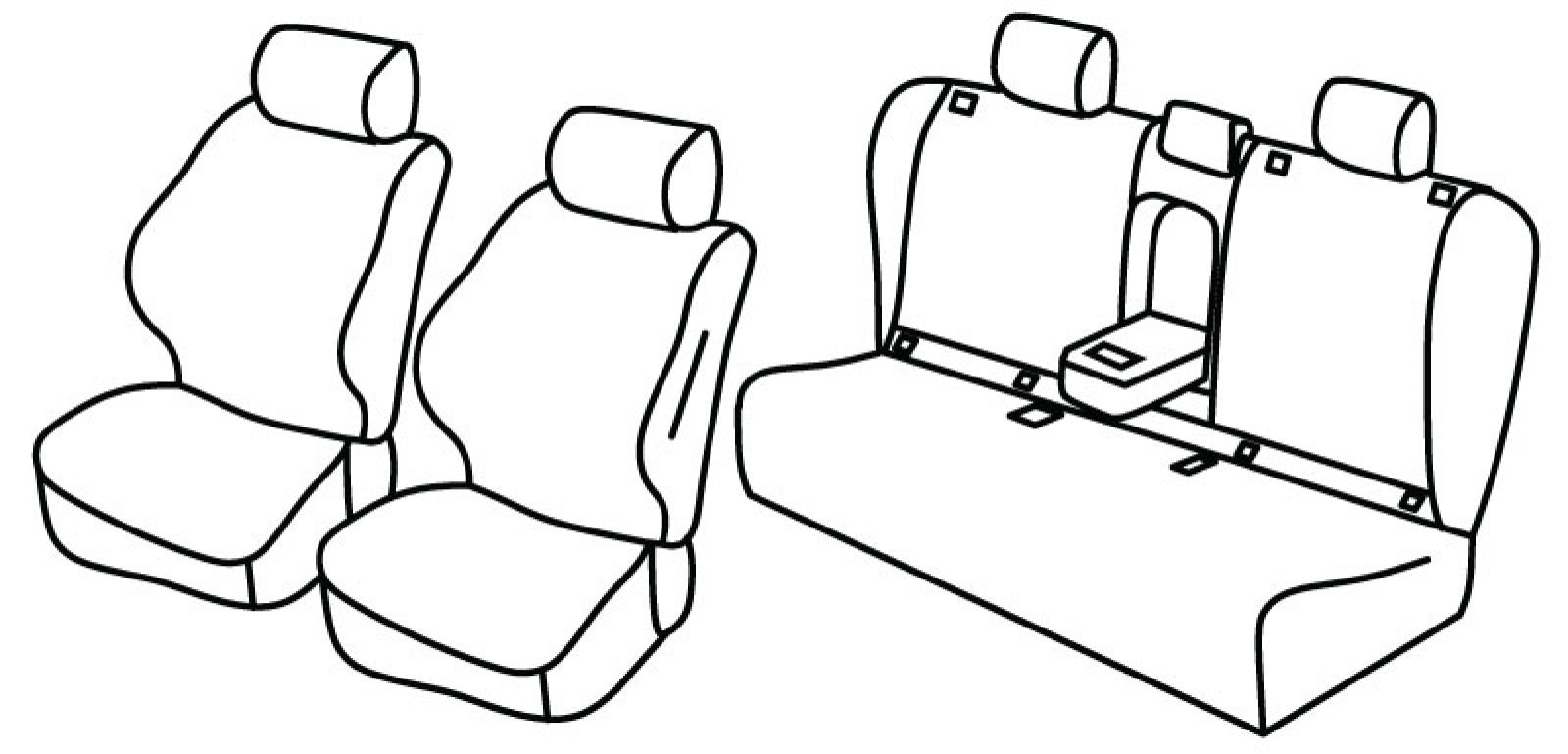 prednja sjedala profilirana, prednji naslon ruke iz 2 dijela (nema presvlaku), poleđina prednjih naslona od plastike koja se prekriva presvlakom, airbag, stražnji naslon djeljiv 1/3+1/3+1/3, stražnje sjedalo u komadu, treći (srednji) pojas izlazi iz naslona, stražnji naslon ruke, isofix povezan s presvlakom, stražnji nasloni za glavu 2 normalna + 1 srednji utopni, bočni stupići