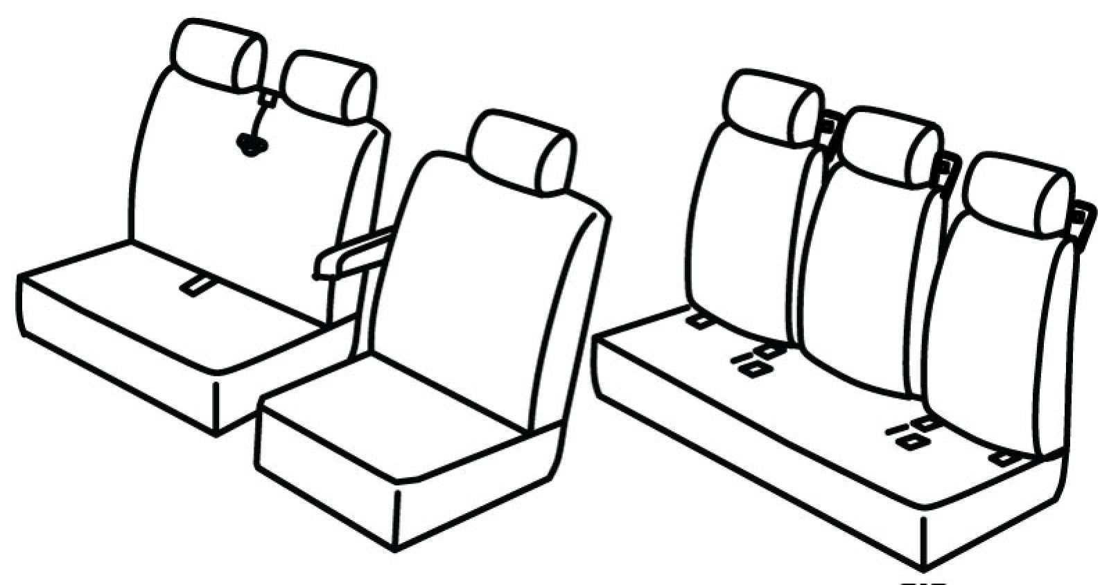 2 od 3 reda sjedala: poleđina vozačeva naslona od plastike koja se prekriva presvlakom, pojas na sredini gornjeg dijela suvozačevog naslona, prednji naslon ruke vezan za naslon vozača, stražnje sjedalo u komadu, stražnji naslon djeljiv 1/3+1/3+1/3, 3 pojasa na stražnjem naslonu, isofix povezan s presvlakom, nasloni za glavu su normalni