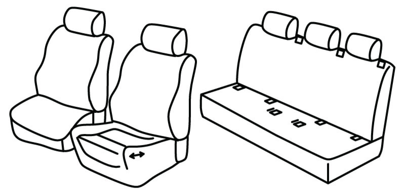 vozačevo sjedalo je ergonomsko, vozačevo sjedalo ima izvlačni dio ali se presvlaka može postaviti samo na potpuno uvučeno sjedalo, suvozačevo sjedalo je obično, stražnji naslon i sjedalo u komadu, 3 pojasa na stražnjem naslonu, isofix povezan s presvlakom, nasloni za glavu su normalni