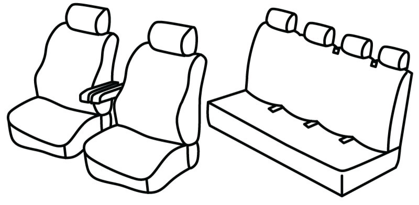 prednja sjedala obična, 2 prednja naslona ruke vezana za naslone sjedala, stražnji naslon i sjedalo u komadu, 2 pojasa na stražnjem naslonu, nasloni glave su normalni