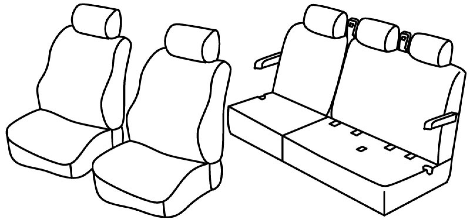 prednja sjedala obična, poleđina prednjih naslona od plastike, prednji nasloni za glavu su normalni, stražnji naslon i sjedalo djeljivi 1/3+2/3, 2 stražnja naslona za ruke s vanjske strane, 3 pojasa na stražnjem naslonu, isofix povezan s presvlakom, stražnji nasloni za glavu su normalni