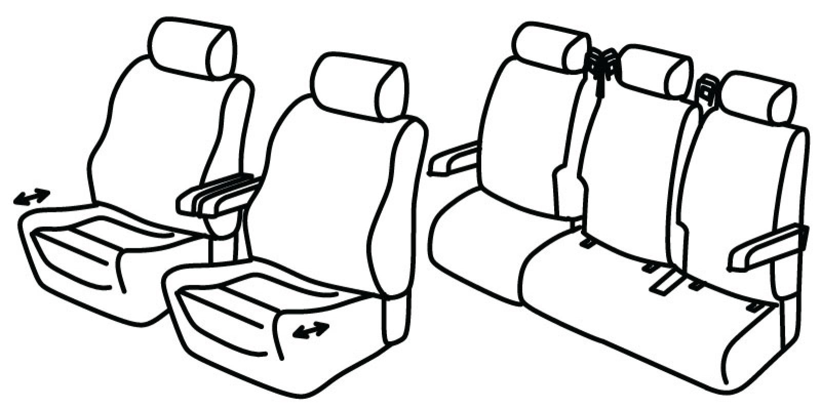 prednja sjedala ergonomska, 2 prednja naslona ruke vezana za naslone sjedala, poleđina prednjih naslona od plastike, 2 stražnja naslona za ruke s vanjske strane, stražnji naslon djeljiv 1/3+1/3+1/3, stražnje sjedalo djeljivo 1/3+2/3, 3 pojasa na stražnjem naslonu, isofix, nasloni za glavu su normalni