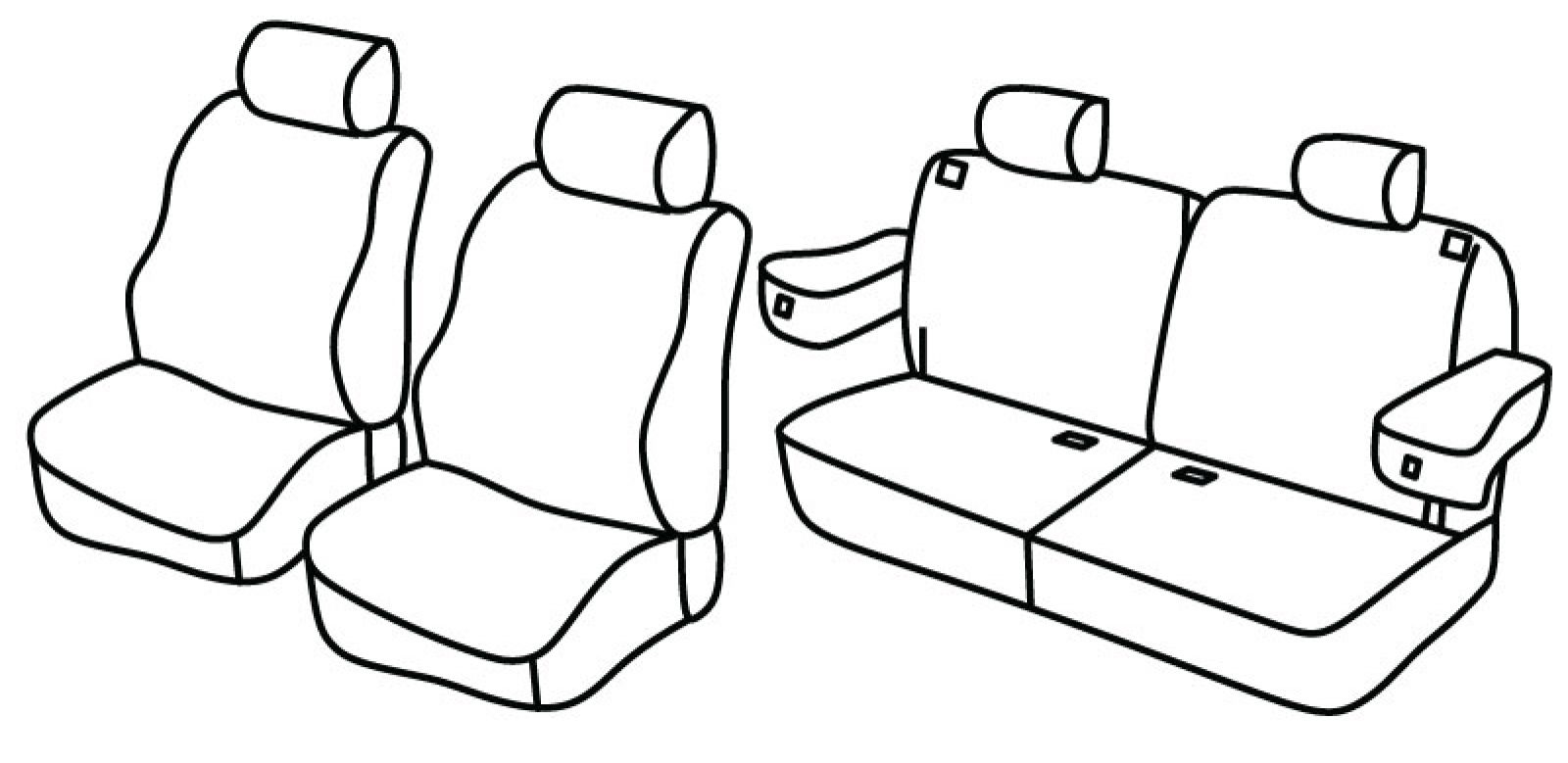 prednja sjedala obična, stražnji naslon i sjedalo djeljivi 1/2+1/2, 2 stražnja naslona za ruke s vanjske strane