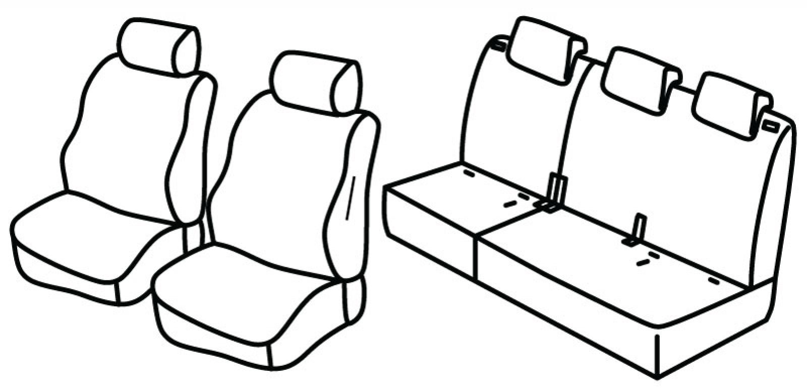 prednja sjedala obična, stražnji naslon i sjedalo djeljivi 1/3+2/3, stražnji nasloni za glavu su utopni, isofix povezan s presvlakom, airbag