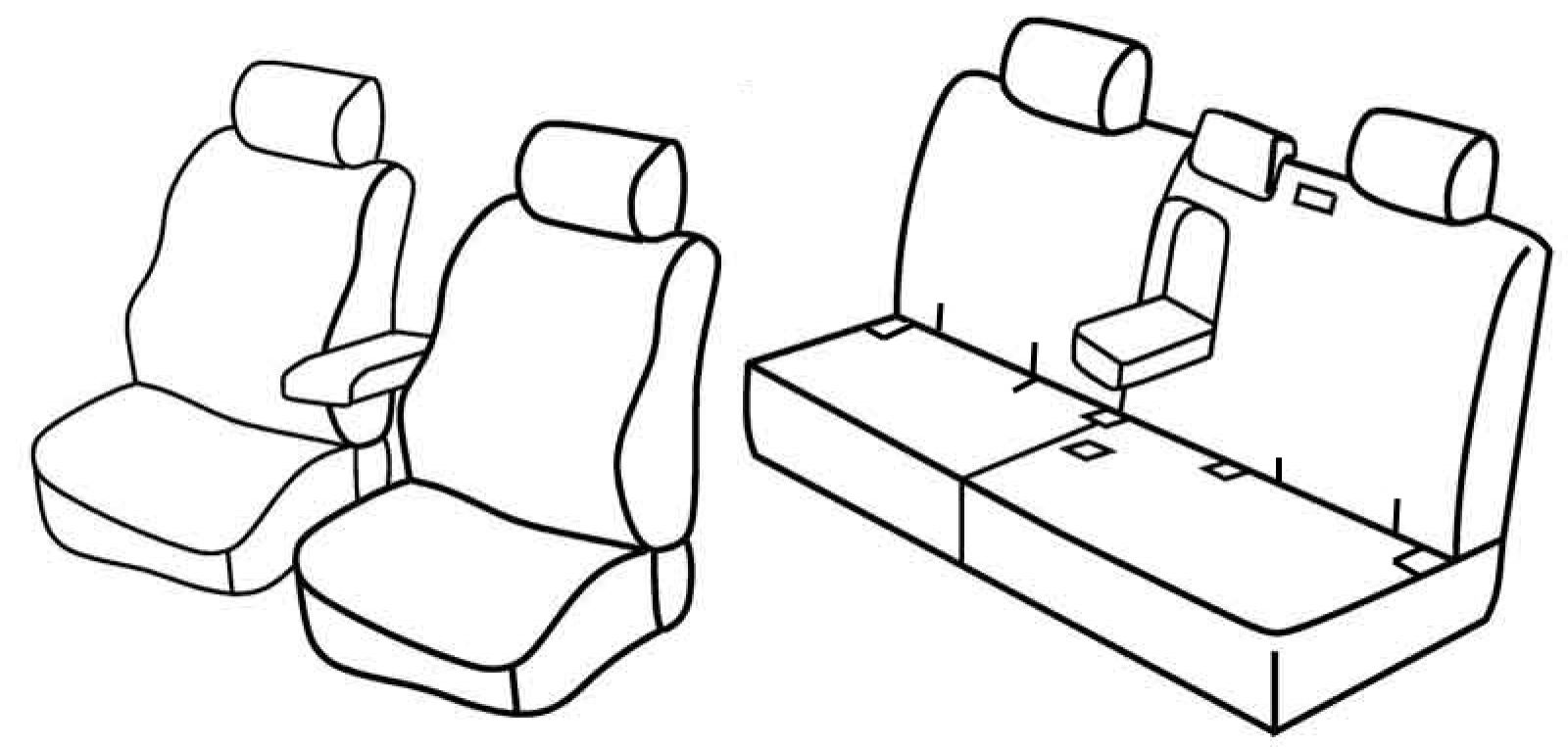 prednja sjedala obična, airbag, poleđina prednjih naslona od plastike, prednji naslon ruke konzolni (nije vezan za naslon sjedala), prednji nasloni za glavu su normalni, stražnji naslon i sjedalo djeljivi 1/3+2/3, stražnji naslon ruke, treći (srednji) pojas izlazi iz naslona, stražnji nasloni za glavu 2 normalna + 1 srednji utopni