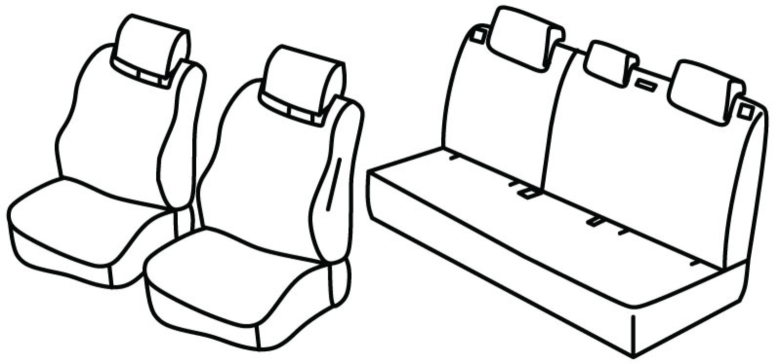 prednja sjedala obična, airbag, stražnji naslon djeljiv 1/3+2/3, stražnje sjedalo u komadu, isofix povezan s presvlakom, treći (srednji) pojas izlazi iz naslona, stražnji nasloni za glavu su utopni (2+1)
