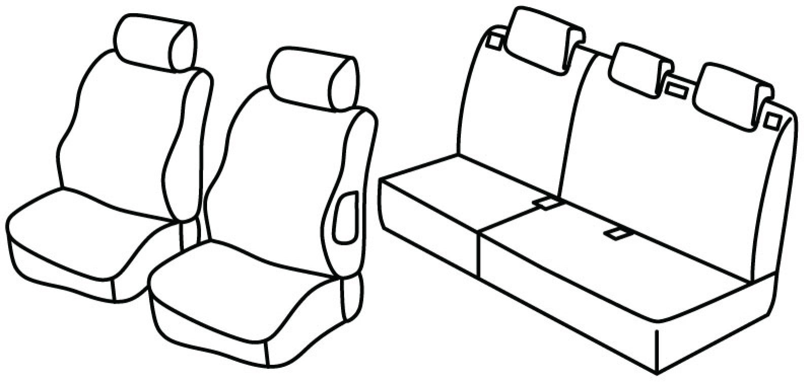 prednja sjedala obična, 2 prednja naslona ruke vezana za naslone sjedala, plastični airbag, stražnji naslon i sjedalo djeljivi 1/3+2/3, treći (srednji) pojas izlazi iz naslona, stražnji nasloni za glavu su utopni (2+1)