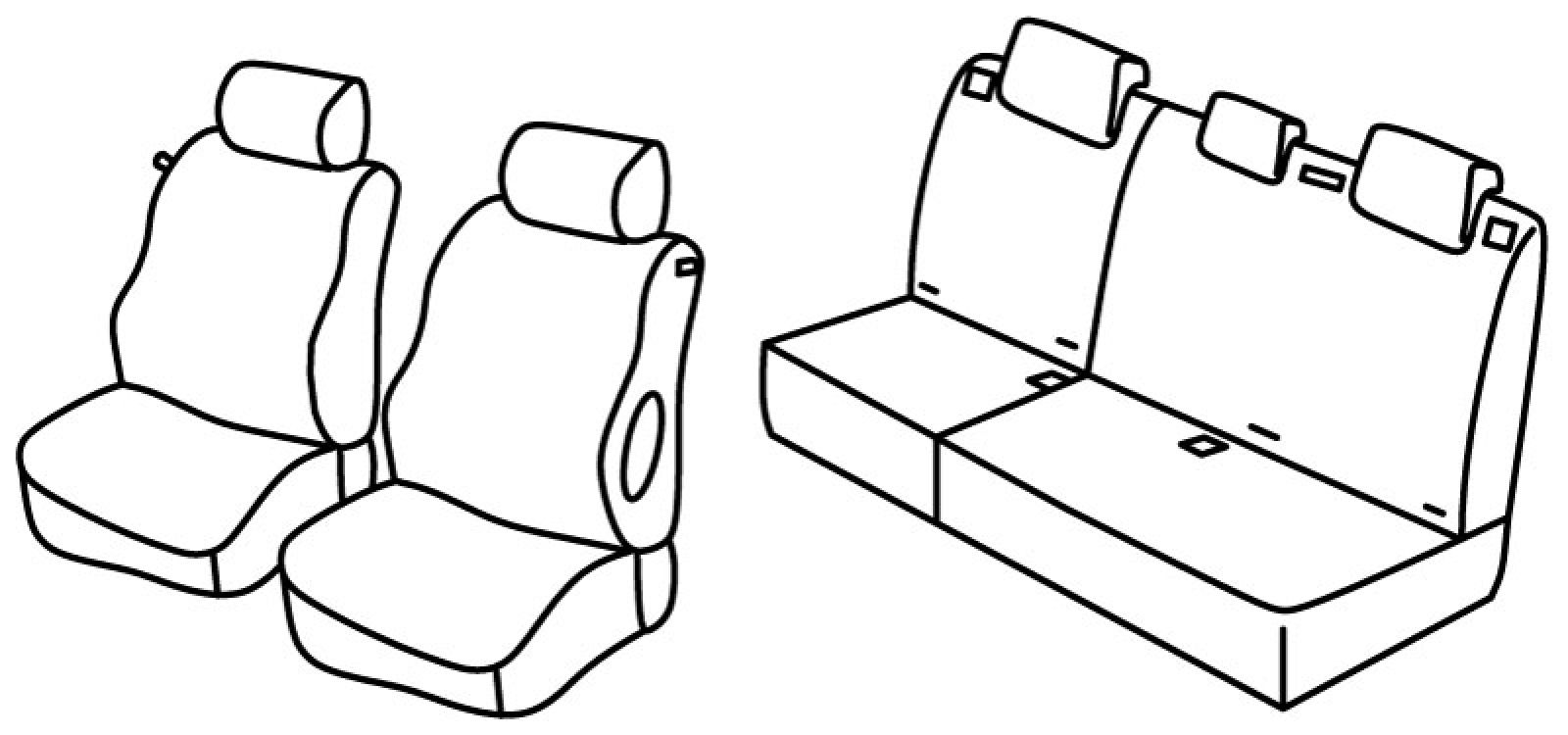 prednja sjedala obična, plastični airbag, prednji nasloni za glavu su normalni, stražnji naslon i sjedalo djeljivi 1/3+2/3, treći (srednji) pojas izlazi iz naslona, isofix povezan s presvlakom, stražnji nasloni za glavu su utopni (2+1)