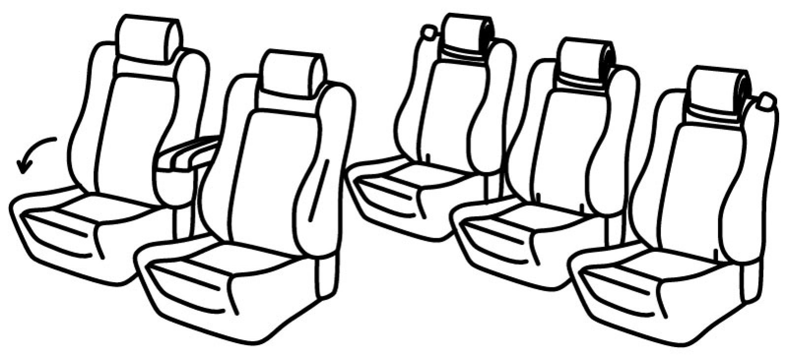 prednja sjedala profilirana, airbag, na poleđini prednjih naslona mogu biti plastični sklopivi stolići, prednji naslon ruke nema presvlaku, prednji nasloni za glavu su normalni, suvozačev naslon se preklapa u stolić za vozača, 3 zasebna sjedala iza, ručice za preklapanje naslona, isofix povezan s presvlakom, stražnji nasloni za glavu su utopni
