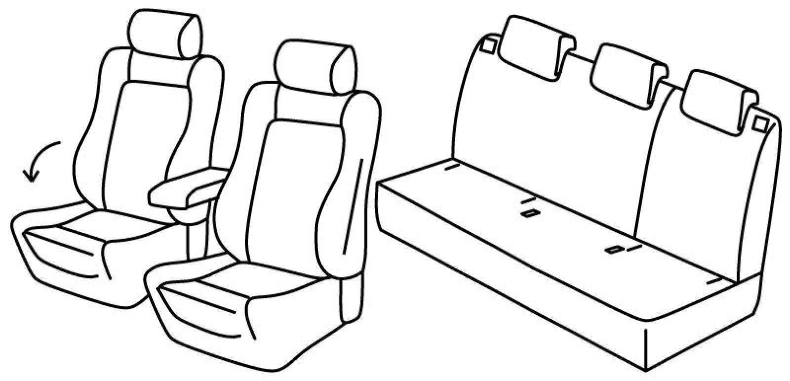 prednja sjedala sportska, airbag, suvozačev naslon se preklapa u stolić za vozača, prednji nasloni za glavu su normalni, prednji naslon ruke konzolni (nije vezan za naslon sjedala), stražnji naslon djeljiv 2/3+1/3, stražnje sjedalo u komadu, isofix povezan s presvlakom, stražnji nasloni za glavu su utopni