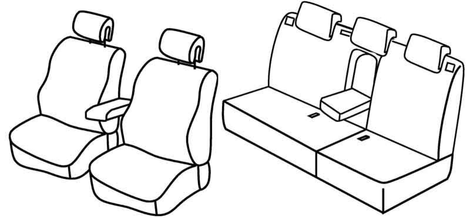 stražnji naslon i sjedalo djeljivi 2/3+1/3, prednji naslon ruke, treći (srednji) pojas izlazi iz naslona, prednji nasloni za glavu su rasklopni ili obični, stražnji nasloni za glavu 3 ista ili 2+1, stražnji naslon ruke, isofix nije povezan s presvlakom, airbag