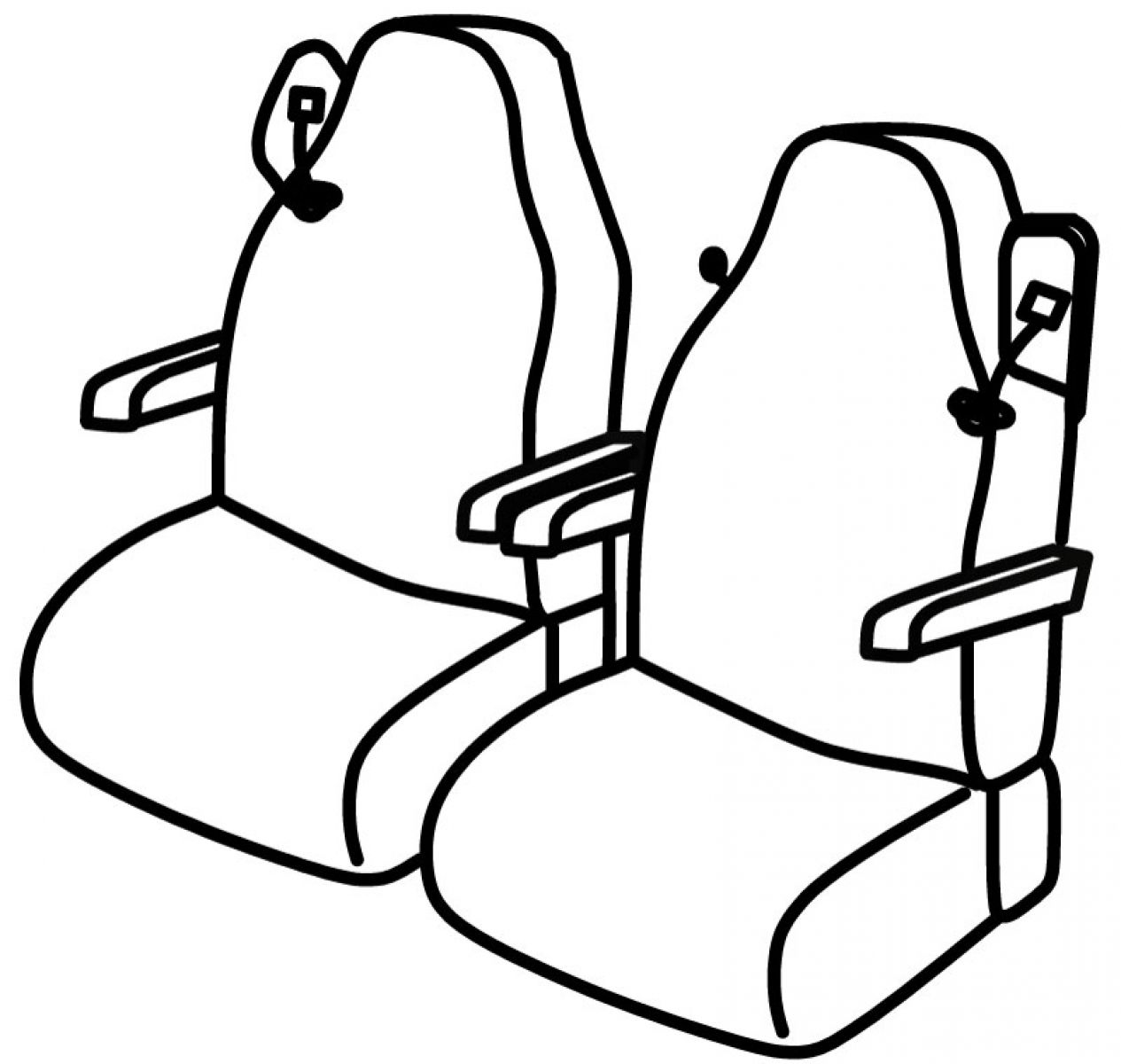 vozačevo i suvozačevo sjedalo su istih dimenzija, prednja sjedala avionska, 2 prednja naslona ruke, 2 prednja naslona ruke vezana za naslon vozača, prednji naslon ruke nema presvlaku, vozačev pojas izlazi iz naslona, suvozačev pojas izlazi iz naslona, sigurnosni pojas većih dimenzija