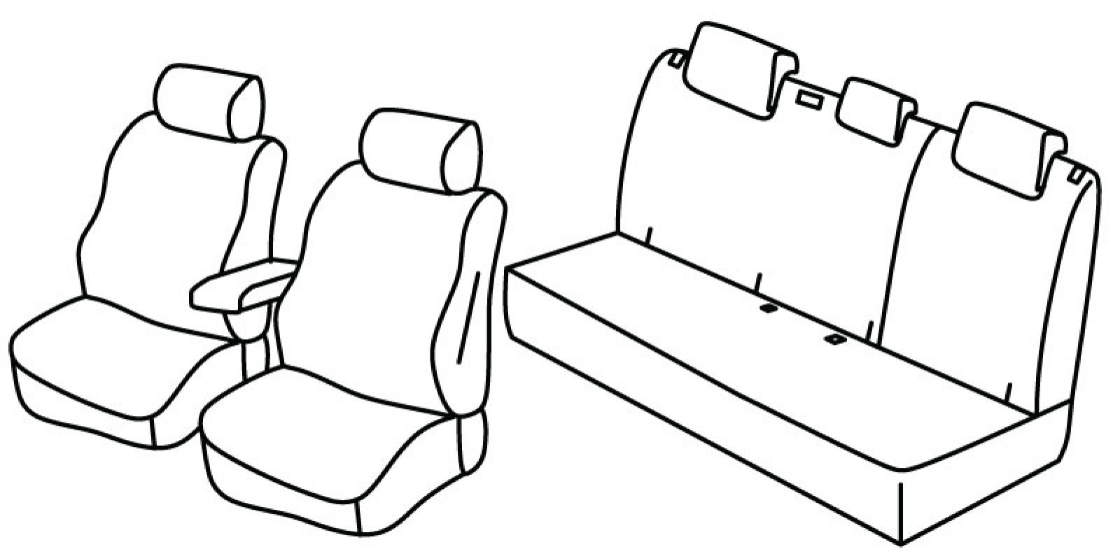 prednja sjedala obična, 3 airbaga (sa vanjske strane prednjih naslona i na vozačevom naslonu sa unutarnje strane), prednji nasloni za glavu su normalni, prednji naslon ruke konzolni (nije vezan za naslon sjedala), stražnji naslon djeljiv 2/3+1/3, stražnje sjedalo u komadu, isofix povezan s presvlakom, treći (srednji) pojas izlazi iz naslona, stražnji nasloni za glavu su utopni (2+1)