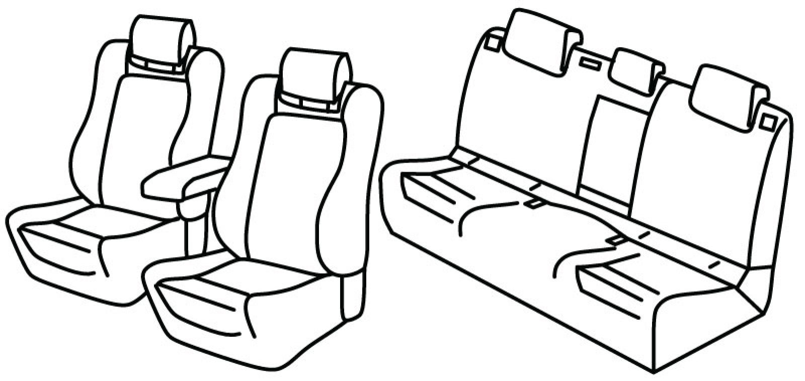 prednja sjedala sportska, prednji naslon ruke konzolni (nije vezan za naslon sjedala), stražnji naslon djeljiv 2/3+1/3, stražnje sjedalo u komadu, isofix povezan s presvlakom, treći (srednji) pojas izlazi iz naslona, stražnji nasloni za glavu su utopni (2+1), stražnji nasloni ruke integrirani u stražnji naslon, airbag samo na vozačevom naslonu sa unutarnje strane