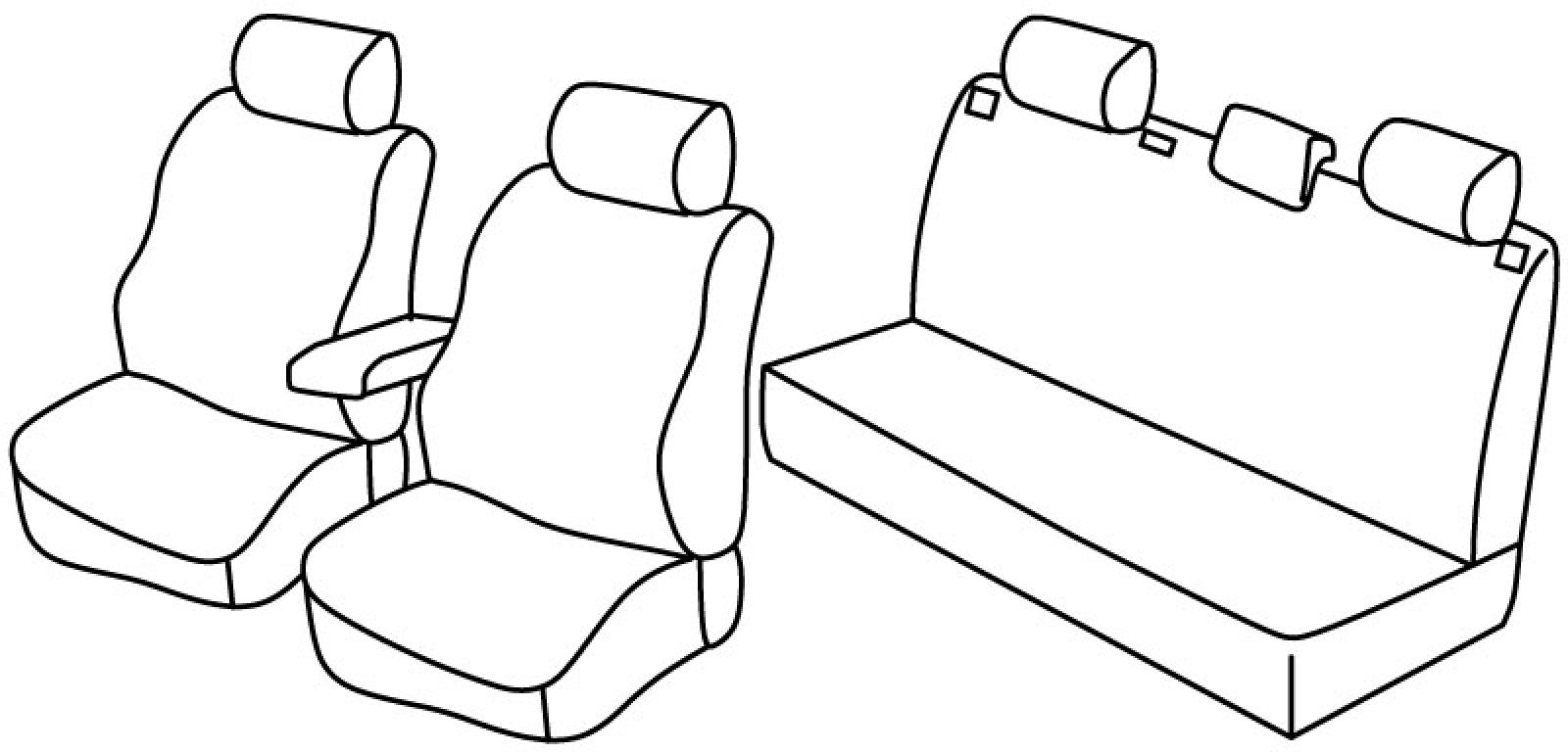 prednja sjedala obična, prednji nasloni za glavu su normalni, prednji naslon ruke konzolni (nije vezan za naslon sjedala), stražnji naslon i sjedalo u komadu, treći (srednji) pojas izlazi iz naslona, stražnji nasloni za glavu 2 normalna + 1 srednji utopni
