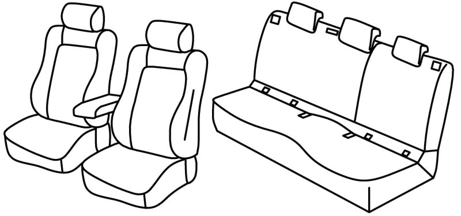prednja sjedala (sjedeći dio) obična, prednji nasloni profilirani, airbag, na poleđini prednjih naslona su plastični sklopivi stolići, prednji naslon ruke konzolni (nije vezan za naslon sjedala), prednji nasloni za glavu su aktivni, stražnji naslon djeljiv 2/3+1/3, stražnje sjedalo u komadu, isofix povezan s presvlakom, treći (srednji) pojas izlazi iz naslona, stražnji nasloni za glavu su utopni (2+1)