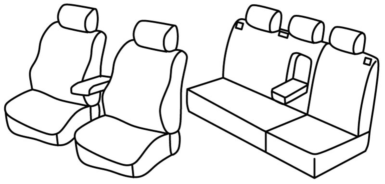 prednja sjedala obična, prednji naslon ruke konzolni (nije vezan za naslon sjedala), stražnji naslon i sjedalo djeljivi 2/3+1/3, 5 naslona za glavu, stražnji nasloni ruke integrirani u stražnji naslon, treći (srednji) pojas izlazi iz naslona