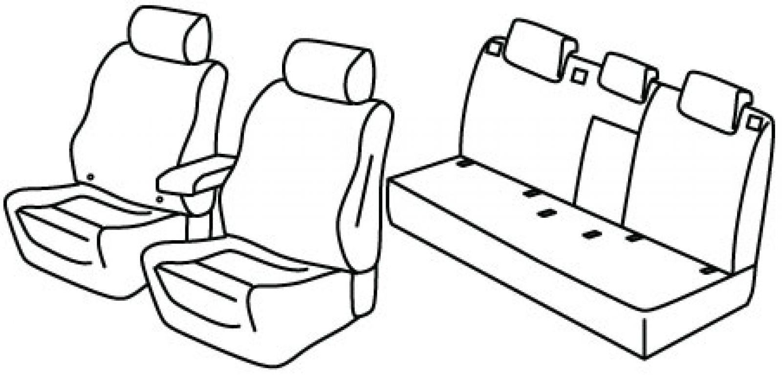 prednja sjedala profilirana, isofix na suvozačevom sjedalu, prednji nasloni za glavu su aktivni, prednji naslon ruke konzolni (nije vezan za naslon sjedala), 3 airbaga (sa vanjske strane prednjih naslona i na vozačevom naslonu sa unutarnje strane), isofix povezan s presvlakom, treći (srednji) pojas izlazi iz naslona, stražnji naslon djeljiv 2/3+1/3, stražnje sjedalo u komadu, stražnji naslon ruke, stražnji nasloni za glavu su utopni (2+1)