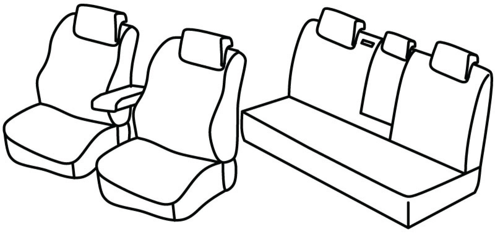 prednja sjedala obična, poleđina prednjih naslona od plastike,prednji nasloni za glavu su utopni, prednji naslon ruke konzolni (nije vezan za naslon sjedala), stražnje sjedalo u komadu, stražnji naslon djeljiv 2/3+1/3,stražnji naslon ruke,treći (srednji) pojas izlazi iz naslona, stražnji nasloni za glavu su utopni (2+1)