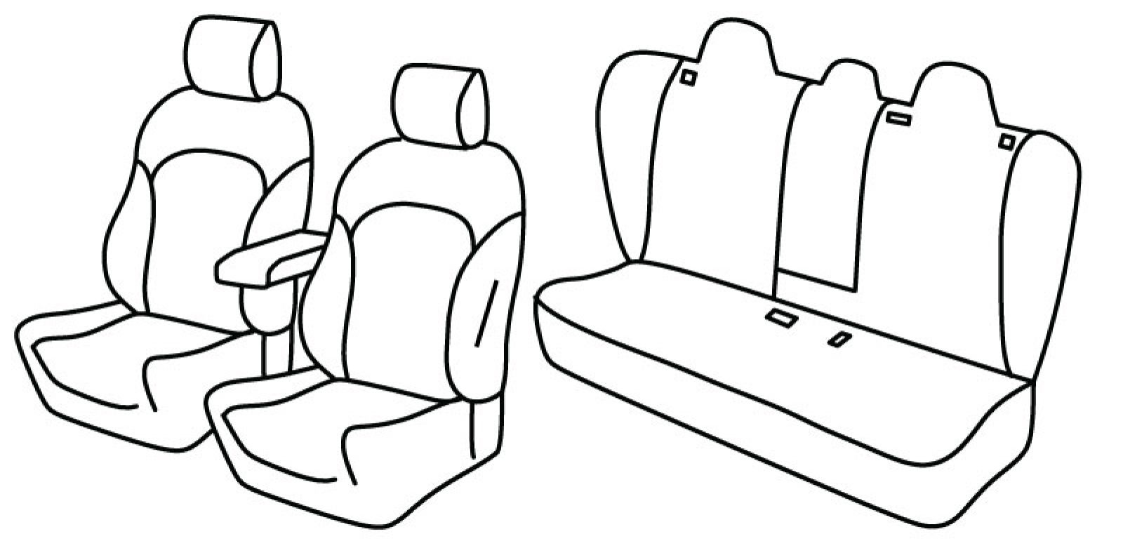 prednja sjedala profilirana, prednji naslon ruke konzolni (nije vezan za naslon sjedala), poleđina prednjih naslona od plastike koja se prekriva presvlakom, airbag, prednji nasloni za glavu su normalni, stražnji naslon djeljiv 1/3+2/3, stražnje sjedalo u komadu, stražnji naslon ruke, srednji naslon glave preklapa se zajedno sa stražnjim naslonom ruke, bočni stupići, treći (srednji) pojas izlazi iz naslona, stražnji nasloni za glavu su avionski