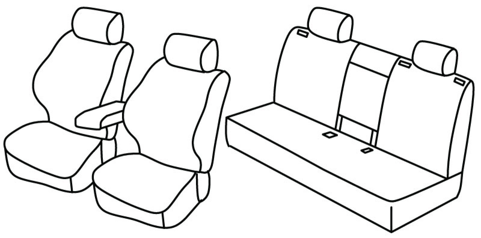 prednja sjedala obična, poleđina prednjih naslona od plastike, prednji naslon ruke konzolni (nije vezan za naslon sjedala), prednji nasloni za glavu su aktivni, stražnji naslon djeljiv 1/3+1/3+1/3, stražnje sjedalo u komadu, stražnji naslon ruke, stražnji srednji naslon glave ulazi u naslon sjedala, treći (srednji) pojas izlazi iz naslona,