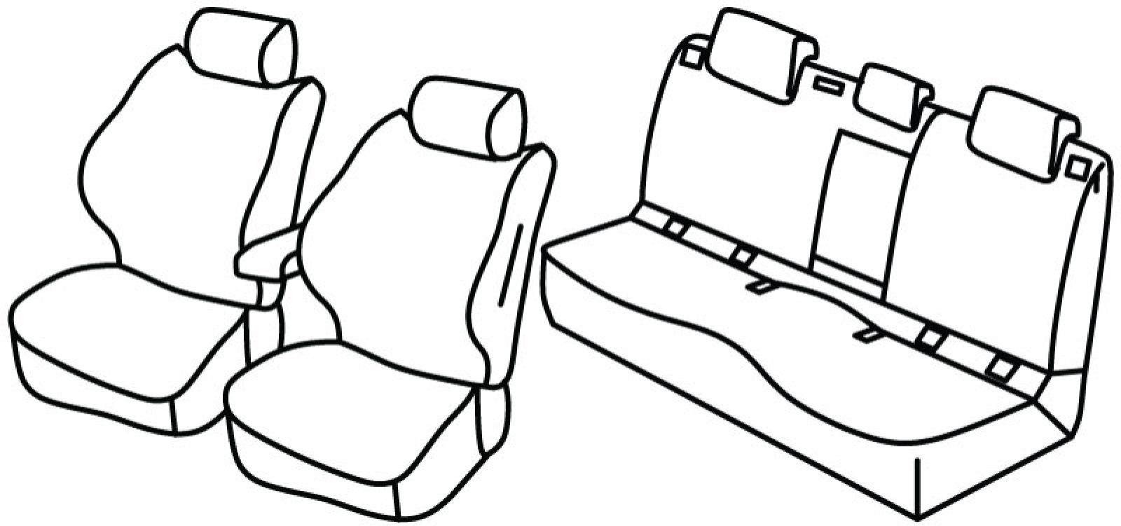 prednji nasloni profilirani, 3 airbaga (sa vanjske strane prednjih naslona i na vozačevom naslonu sa unutarnje strane), prednji naslon ruke konzolni (nije vezan za naslon sjedala), stražnji naslon djeljiv 2/3+1/3, stražnje sjedalo u komadu, stražnji naslon ruke, isofix povezan s presvlakom, treći (srednji) pojas izlazi iz naslona, stražnji nasloni za glavu su utopni (2+1)