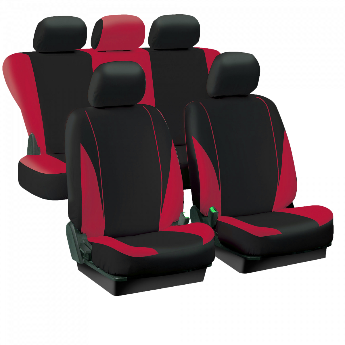 Univerzalne auto presvlake za prednja dva sjedala i stražnje sjedalo i naslon. 100% Poliester. Odgovaraju za sjedala s bočnim zračnim jastucima! Presvlake mogu biti različite boje: crveno-crna, plavo-crna ili sivo-crna. Presvlaka ima ukupno 11 dijelova. Odgovara za djeljiv stražnji naslon - iza vozača i iza suvozača!