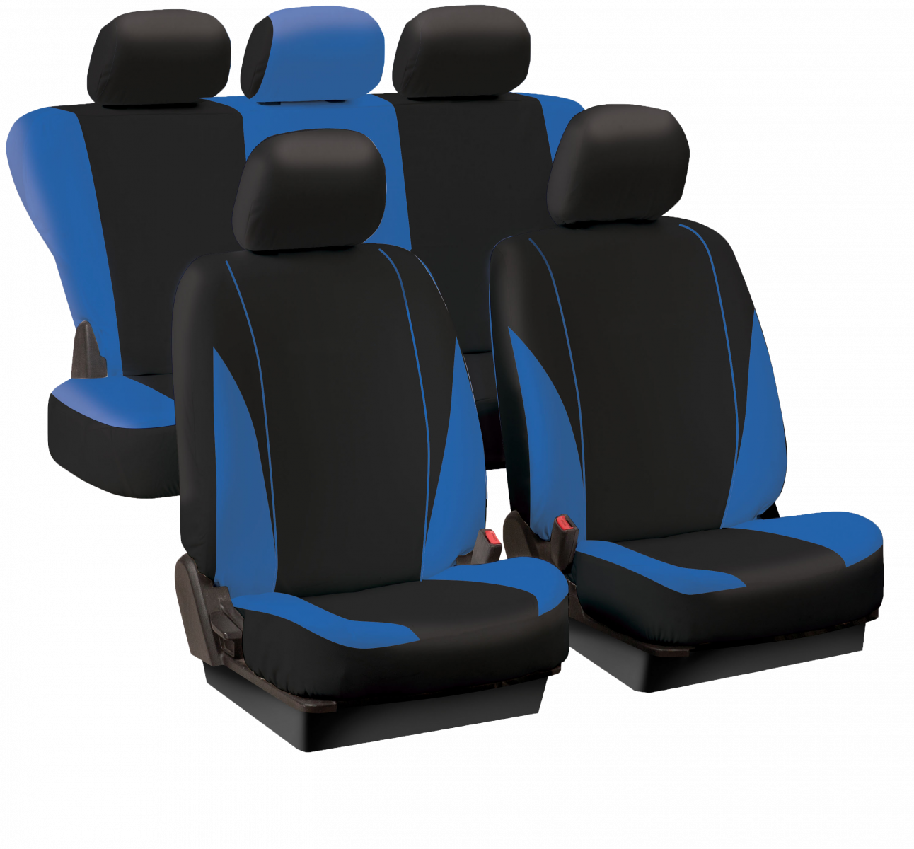 Univerzalne auto presvlake za prednja dva sjedala i stražnje sjedalo i naslon. 100% Poliester. Odgovaraju za sjedala s bočnim zračnim jastucima! Presvlake mogu biti različite boje: crveno-crna, plavo-crna ili sivo-crna. Presvlaka ima ukupno 11 dijelova. Odgovara za djeljiv stražnji naslon - iza vozača i iza suvozača!