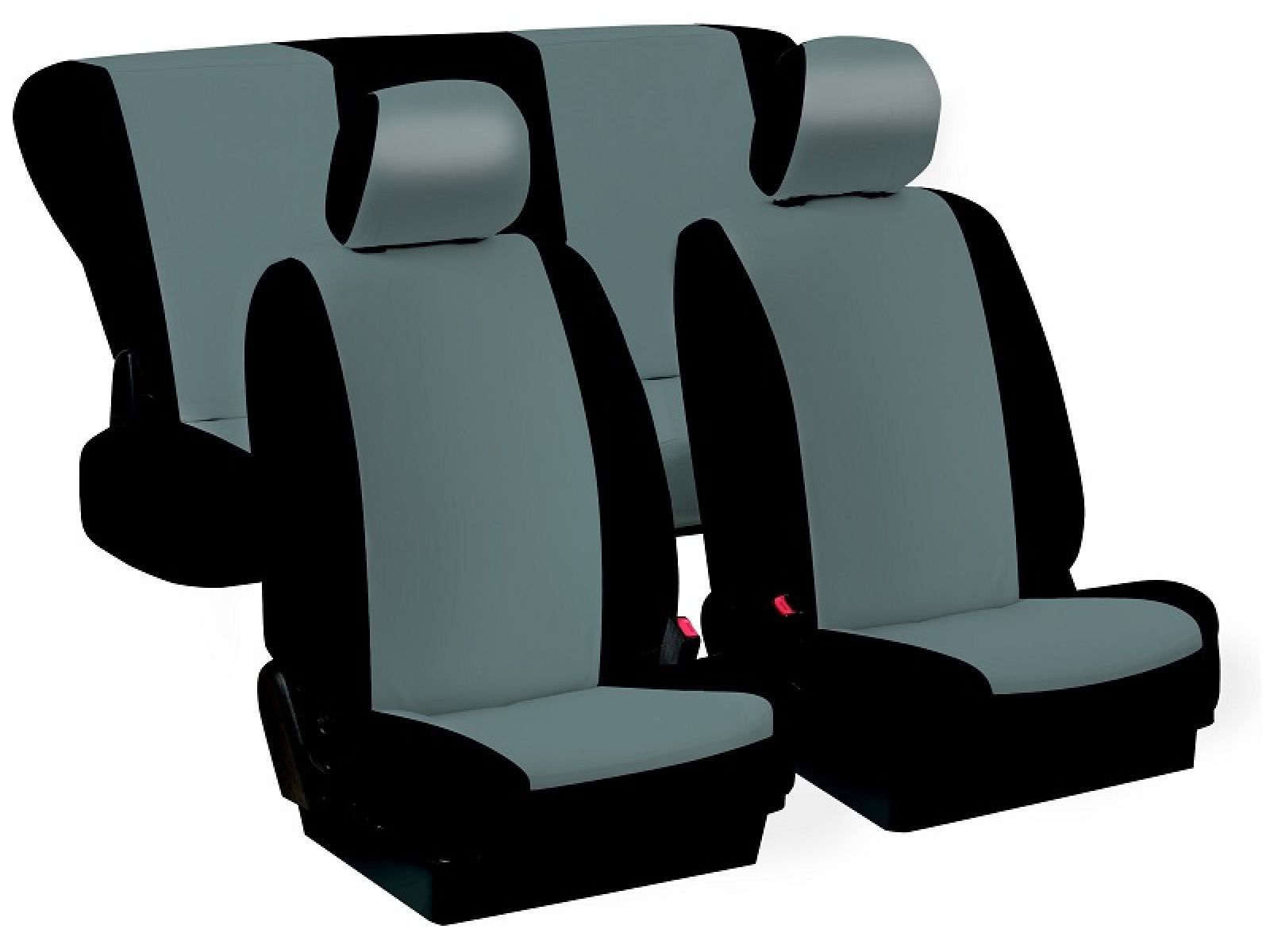 Univerzalne auto presvlake iz 6 dijelova. Ne odgovaraju modelima sa ugrađenim zračnim jastucima u sjedalima. 100 % poliester. Skupljanje: po dužini do 2%, po širini do 2%. Moguće kombinacije boja: Crno-crvena, Crno-plava, Crno-siva.