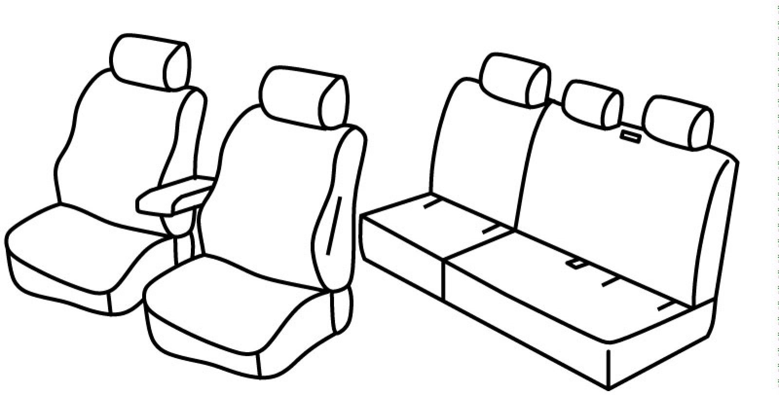 1. red: 1+1, prednji naslon ruke, prednja sjedala obična, stražnji naslon i sjedalo djeljivi 1/3+2/3, treći (srednji) pojas izlazi iz naslona, isofix, airbag
