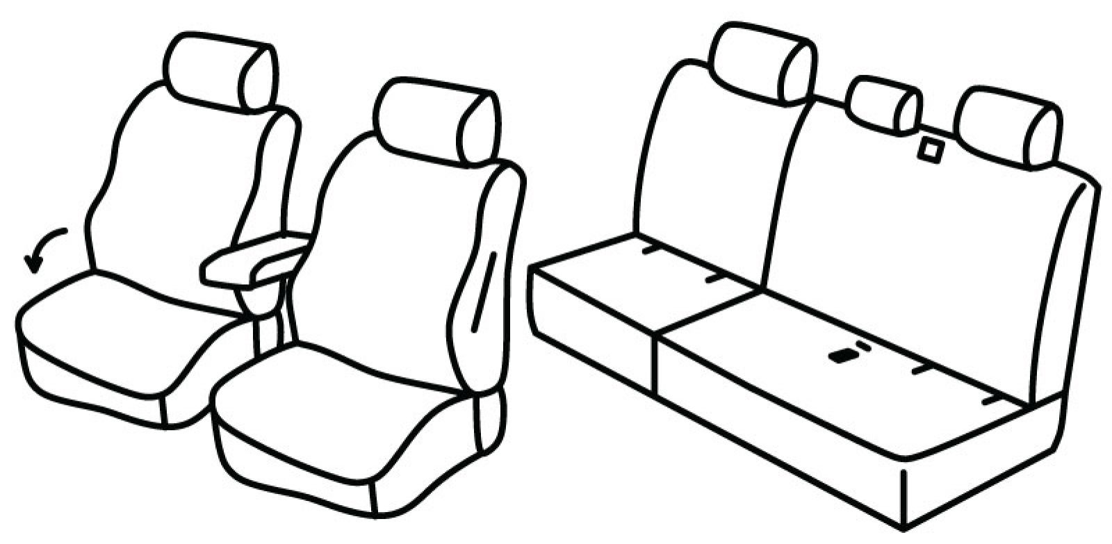 prednja sjedala obična, prednji nasloni za glavu su aktivni, suvozačev naslon se preklapa u stolić za vozača, prednji naslon ruke, na poleđini prednjih naslona su plastični sklopivi stolići, stražnji naslon i sjedalo djeljivi 1/3+2/3, treći (srednji) pojas izlazi iz naslona, 3 airbaga (sa vanjske strane prednjih naslona i na vozačevom naslonu sa unutarnje strane), isofix