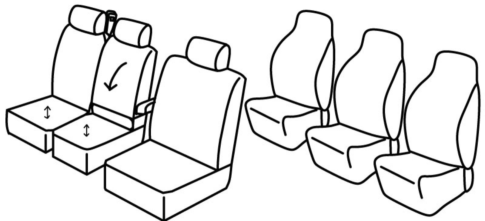 2 prednja naslona ruke vezana za naslon vozača, dupli naslon i sjedalo djeljivi (1/2+1/2), pojas na sredini gornjeg dijela suvozačevog naslona, poleđina prednjeg srednjeg naslona od plastike koja se prekriva presvlakom, suvozačev naslon pored vozača ima mogućnost preklapanja, ispod suvozačevog sjedala nalazi se spremište, nasloni za glavu su normalni, 2. red: 3 zasebna sjedala iza, stražnja sjedala su avionska