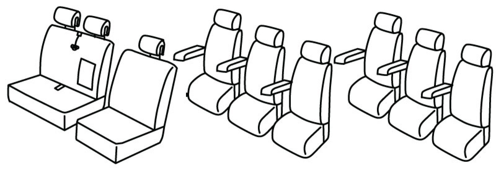 vozačevo sjedalo je obično, prednji nasloni za glavu su rasklopni, naslon srednjeg sjedala ima ugrađen naslon za ruku, pojas na sredini gornjeg dijela duplog naslona, dupli naslon i sjedalo u komadu, 2. i 3. red: stražnji nasloni za glavu su aktivni, 6 stražnja naslona za ruke spojena s naslonima, 6 zasebna sjedala